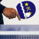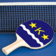 Ping pong paddle design with flag of Kinshasa, capital city of Democratic Republic of Congo, blue flag with white wave, two golden stars and letter ‘K’ in the centre
