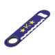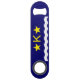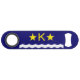 Bottle Opener with design with flag of Kinshasa, capital city of Democratic Republic of Congo, blue flag with white wave, two golden stars and letter ‘K’ in the centre