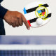 Ping Pong Paddle with a design with the flag of Knoxville, Tennessee. A black, white, blue, and red flag