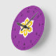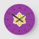 Clock with a design with the flag of Kyoto Prefecture in Japan (京都府, Kyōto-fu), a purple flag with a white and yellow symbol of a cherry flower