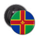 Bottle Opener with design with a flag of historic county of Lincolnshire, in England, Great Britain; green and blue flag with red and yellow cross and a Fleur-de-Lis in the centre