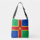 Bag with design with a flag of historic county of Lincolnshire, in England, Great Britain; green and blue flag with red and yellow cross and a Fleur-de-Lis in the centre