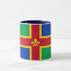 Mug with design with a flag of historic county of Lincolnshire, in England, Great Britain; green and blue flag with red and yellow cross and a Fleur-de-Lis in the centre