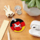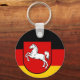 Button Keychain with flag of Lower Saxony; design with horizontal tricolor of black, red and yellow (golden), with state’s emblem with an illustration of a white horse in the centre