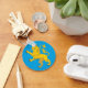 Round keychain with the flag of Lviv Oblast (Lvivska oblast, Льві́вська о́бласть), a sky blue flag with an illustration of a yellow lion in the centre
