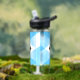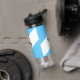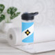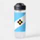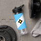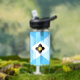 Water Bottle with flag of city of Madison, Wisconsin; light blue and white flag with a black cross and yellow circle in the centre