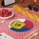 Paper plate with flag of city of Memphis, Tennessee; red, white and blue flag with yellow emblem with an illustration of ship