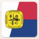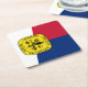 Paper coaster with flag of city of Memphis, Tennessee; red, white and blue flag with yellow emblem with an illustration of ship