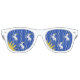 Party Shades with design with a flag of historic county of Merioneth, in Wales, Great Britain; blue azure flag with three white goats and yellow sun