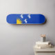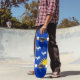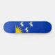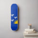 Skateboard with design with a flag of historic county of Merioneth, in Wales, Great Britain; blue azure flag with three white goats and yellow sun