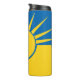 Tumbler with flag of city Mesa, Arizona; yellow and blue flag with stylised illustrations of desert, cactus and rising sun