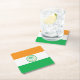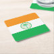Paper coaster with flag of city of Miami, Florida; flag with three horizontal bands of orange, white and green with emblem with an illustration of a palm tree in the centre
