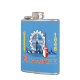 Flask with flag of city of Milwaukee, Wisconsin; light blue flag with city panorama
