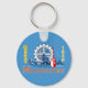 Button Keychain with flag of city of Milwaukee, Wisconsin; light blue flag with city panorama