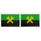 This design features the flag of miners, which is intended to represent all workers in the mining industry. Mining is the process of digging valuable geological materials out of the ground. Mining can include the extraction of metals and minerals, like coal, diamond, gold, silver, platinum, copper, tin and iron. Mining can also include the extraction of other valuable commodities like oil and natural gas.
