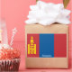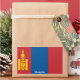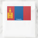 The Flag of Mongolia (Mongolian: Монгол улсын төрийн далбаа, State flag of Mongolia) consists of three equal bands, of alternating red, blue and red, with the soyombo national symbol[1] centring the first red band in yellow. The central blue band is described as the eternal blue sky, while the side red bands represent the ability of Mongolia to thrive in its harsh environment. The soyombo is a columnar arrangement of abstract and geometric representations of fire, sun, moon, earth, water, and the Taijitu or (Yin-Yang) symbol. The current flag was adopted on February 12, 1992, after the transition of Mongolia to a democracy. It is similar to the flag of 1949, except for the removal of the socialist star on top of the Soyombo.