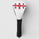 Golf Head Cover with the flag of Montreal, the most populous city in the province of Quebec, Canada. A white flag with a red cross, a white pine, a blue Fleur-de-lys, a red Rose of Lancaster, a shamrock, and a thistle