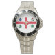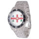 Watch with the flag of Montreal, the most populous city in the province of Quebec, Canada. A white flag with a red cross, a white pine, a blue Fleur-de-lys, a red Rose of Lancaster, a shamrock, and a thistle
