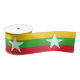 This design features the national flag of Myanmar or Burma (officially known as the Republic of the Union of Myanmar), which is a country in Southeast Asia. Myanmar is bordered by Bangladesh and India to its northwest; China to its northeast; Laos and Thailand to its east and southeast; and the Andaman Sea and the Bay of Bengal to its south and southwest. The capital city of Myanmar is Naypyidaw, and the country's largest city is Yangon (Rangoon). Other major cities in Myanmar include Mandalay, Bago, Hpa-An, Taunggyi, Monywa, Myitkyina, Mawlamyine and Magway.