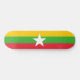 This design features the national flag of Myanmar or Burma (officially known as the Republic of the Union of Myanmar), which is a country in Southeast Asia. Myanmar is bordered by Bangladesh and India to its northwest; China to its northeast; Laos and Thailand to its east and southeast; and the Andaman Sea and the Bay of Bengal to its south and southwest. The capital city of Myanmar is Naypyidaw, and the country's largest city is Yangon (Rangoon). Other major cities in Myanmar include Mandalay, Bago, Hpa-An, Taunggyi, Monywa, Myitkyina, Mawlamyine and Magway.
