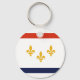Button Keychain with flag of city of New Orleans, Louisiana; white flag with red and blue stripes and three golden fleur-de-lys