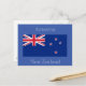 The flag of the New Zealand on a dark blue background with New Zealand in both English and Māroi.