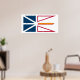 This design features the flag of Newfoundland and Labrador, which is the easternmost province of Canada. The province is situated in the country's Atlantic region; it is composed of the island of Newfoundland and the continental region of Labrador to the northwest. The capital and largest city of Newfoundland and Labrador is St. John's. The two other cities in the province are Corner Brook and Mount Pearl.