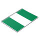 This design features the national flag of Nigeria (officially the Federal Republic of Nigeria), which is a sovereign country located in West Africa. Nigeria has borders with Niger in the north, Chad in the northeast, Cameroon in the east and Benin in the west. Its southern coast is on the Gulf of Guinea in the Atlantic Ocean. Nigeria is a federal republic comprising 36 states and the Federal Capital Territory, where the capital city of Abuja is located. Besides the capital, Nigeria has five cities with a population of over a million: Lagos, Kano, Ibadan, Benin City and Port Harcourt. Lagos is the largest city in Africa.