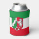Can cooler with variant flag of North-Rhine Westphalia (Nordrhein-Westfalens), design with horizontal tricolor of green, white and red; with a shield with illustration of river and horse in the centre