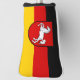 Golf putter cover with flag of Lower Saxony; design with horizontal tricolor of black, red and yellow (golden), with state’s emblem with an illustration of a white horse in the centre