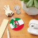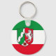 Button Keychain with variant flag of North-Rhine Westphalia (Nordrhein-Westfalens), design with horizontal tricolor of green, white and red; with a shield with illustration of river and horse in the centre