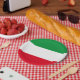 Paper plate with flag of North-Rhine Westphalia (Nordrhein-Westfalens), design with horizontal tricolor of green, white and red