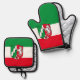 Pot Holder Set with variant flag of North-Rhine Westphalia (Nordrhein-Westfalens), design with horizontal tricolor of green, white and red; with a shield with illustration of river and horse in the centre