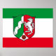 Poster with variant flag of North-Rhine Westphalia (Nordrhein-Westfalens), design with horizontal tricolor of green, white and red; with a shield with illustration of river and horse in the centre
