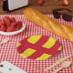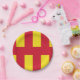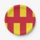 Paper plate with design with a flag of historic county of Northumberland, in England, Great Britain; red and yellow flag based on the St. Oswald banner