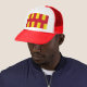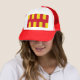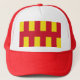 Hat with design with a flag of historic county of Northumberland, in England, Great Britain; red and yellow flag based on the St. Oswald banner
