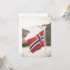 Photo of the Norwegian Flag on the back of a boat. Location: Holandsfjorden, with Engabreen, a part of Svartisven Glacier in the background. Photo © Sebastian Worm.