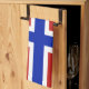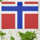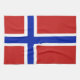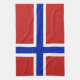 The flag of Norway is a red with an indigo blue Scandinavian cross fimbriated in white that extends to the edges of the flag; the vertical part of the cross is shifted to the hoist side in the style of the Dannebrog, the flag of Denmark.