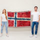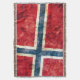 This item has a distressed style Norwegian flag at a slight angle. The flag of Norway is red with a blue Scandinavian cross outlined in white that extends to the edges of the flag.
