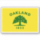Show your love for The Town with this vibrant sticker featuring the official flag of Oakland, California. The design prominently displays the city's iconic symbol—a stately green oak tree on a field of gold and white.