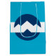 Gift Bag with a design with the flag of Ogden, Utah. A blue and white flag with mountain peaks in the centre