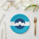 Paper Plate with a design with the flag of Ogden, Utah. A blue and white flag with mountain peaks in the centre