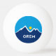 Ping Pong Ball with a design with the flag of Orem, Utah. A blue, white, and yellow flag with mountain peaks and the sun in the centre