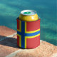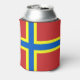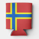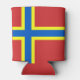 Can cooler with design with a flag of historic county of Orkney, in Scotland, Great Britain; red flag with blue and yellow Nordic cross