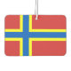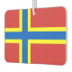 Air Freshener with design with a flag of historic county of Orkney, in Scotland, Great Britain; red flag with blue and yellow Nordic cross