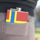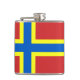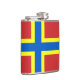 Vinyl wrapped flask with design with a flag of historic county of Orkney, in Scotland, Great Britain; red flag with blue and yellow Nordic cross