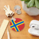 Keychain with design with a flag of historic county of Orkney, in Scotland, Great Britain; red flag with blue and yellow Nordic cross