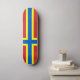 Skateboard with design with a flag of historic county of Orkney, in Scotland, Great Britain; red flag with blue and yellow Nordic cross