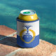 Can Cooler with a design with the flag of Orlando, Florida. A blue and white flag with the lake Eola fountain in the centre
