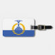 Luggage with a design with the flag of Orlando, Florida. A blue and white flag with the lake Eola fountain in the centre